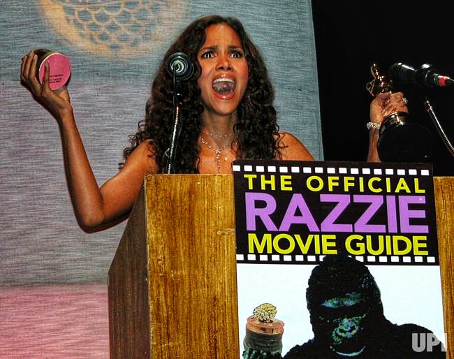 No es tradición que algún ganador se presente,pero ha ocurrido. Como la vez en que Haley Berry se presentó, alegre y graciosa, a aceptar su trofeo: una barata frambuesa plástica sobre un carrete de película, ambos pintados con spray dorado.